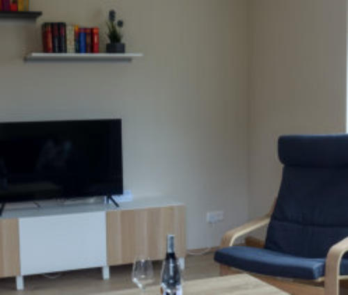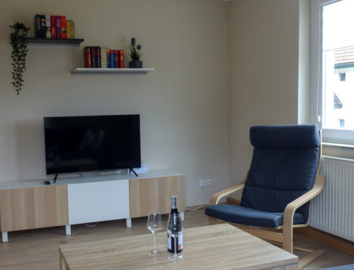 Wohnzimmer mit TV und Schlafsofa von „Bali“