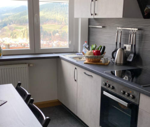 Küche mit Tisch für 4 Personen ( Kühlschrank, Gefrierschrank,
